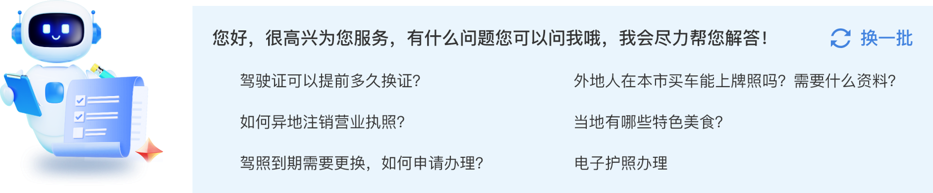 您的政务服务小助手,致力于为您高效解答办事常见问题,辅助您完成政务服务办理。